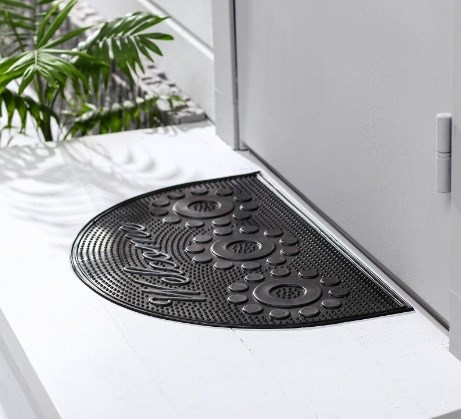 Грязезащитный коврик рекомендован для установки как снаружи (со стороны улицы), так и внутри, сразу за входной дверью. Напольное покрытие благодаря небольшому бортику и особой структуре эффективно удерживает в себе грязь с водой, талый снег. Кроме того, резиновое основание абсолютно не скользит в процессе эксплуатации – даже если уложить на скользкую поверхность (на кафель в бассейне, душевой комнате).