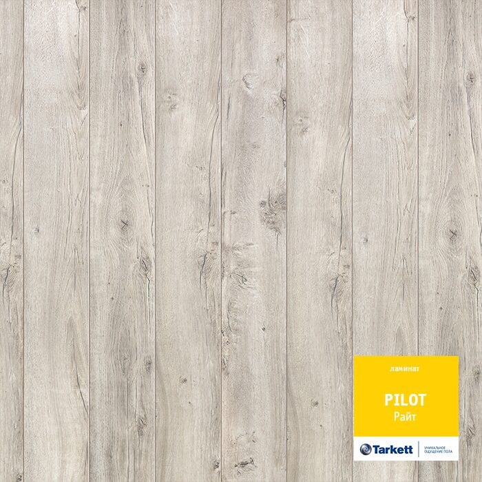 Однополосный ламинат 33 класса Pilot в декоре Райт (Wright) светло-серого цвета от производителя Tarkett толщиной 10мм, на замковой системе TС`Lock с V фаской по периметру. Тиснённая в регистре поверхность с древесной текстурой. Гарантия для жилых помещений - 25 лет.