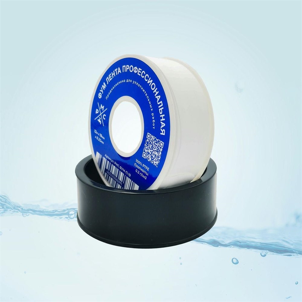 Лента фторопластового уплотнительного материала (фумлента) РМС ФУМ-П-190.3, для воды, 0.25x19ммx12м, 0.1г/см3
