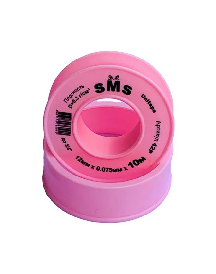 Лента фторопластового уплотнительного материала (фумлента) SMS 42Р, для воды, 0.075x12ммx12м, 0.3г/см3