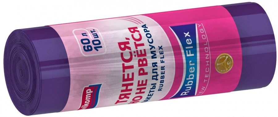 Мешки для мусора ТЯНЕТСЯ, НО НЕ РВЕТСЯ Avikomp 40387, 60л, 22мкм, ПВД, фиолетовые, в рулоне 10шт.
