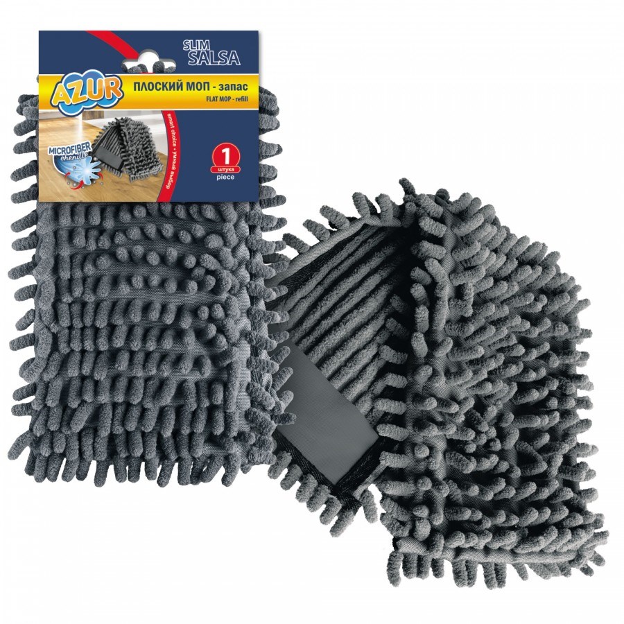 Насадка для швабры Сальса AZUR 081570, 13x43см, плоская, микрофибра с карманами, серая - купить в Орле недорого!