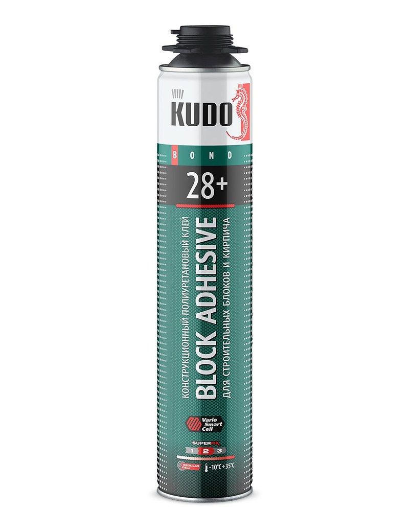 Пена-клей монтажный KUDO PROFF 28+, 1000мл, профессиональная, всесезонная, для строительных блоков и кирпича