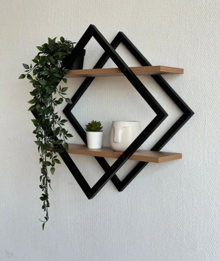 Настенную мебель можно повесить в ванной комнате или туалете для туалетных принадлежностей. Цельная металлическая конструкция изготовлена из профильной квадратной трубы в черном тоне. Подчеркивает элегантность и строгость универсальной модели. Сварочные швы ровные. Полимерная антикоррозийная краска экологична, влагоустойчива, безопасна. Полка сделана в форме ромба. Имеет два уровня. Книжная полка с минимальным числом перегородок предполагает максимум пространства для расстановки арт-объектов. Отсутствие стенок дает возможность поставить высокие аксессуары. Полочная горизонтальная поверхность подвижна. Вы можете создать симметричную или ассиметричную композицию. Компактные размеры позволяют использовать настенный инвентарь в маленьких помещениях. Настенная полка Лофт отличается прочностью и долговечностью. Все детали и крепления необходимые для сборки прилагаются в комплекте. Комплектация надежно упакована, чтобы минимизировать повреждения при транспортировке.