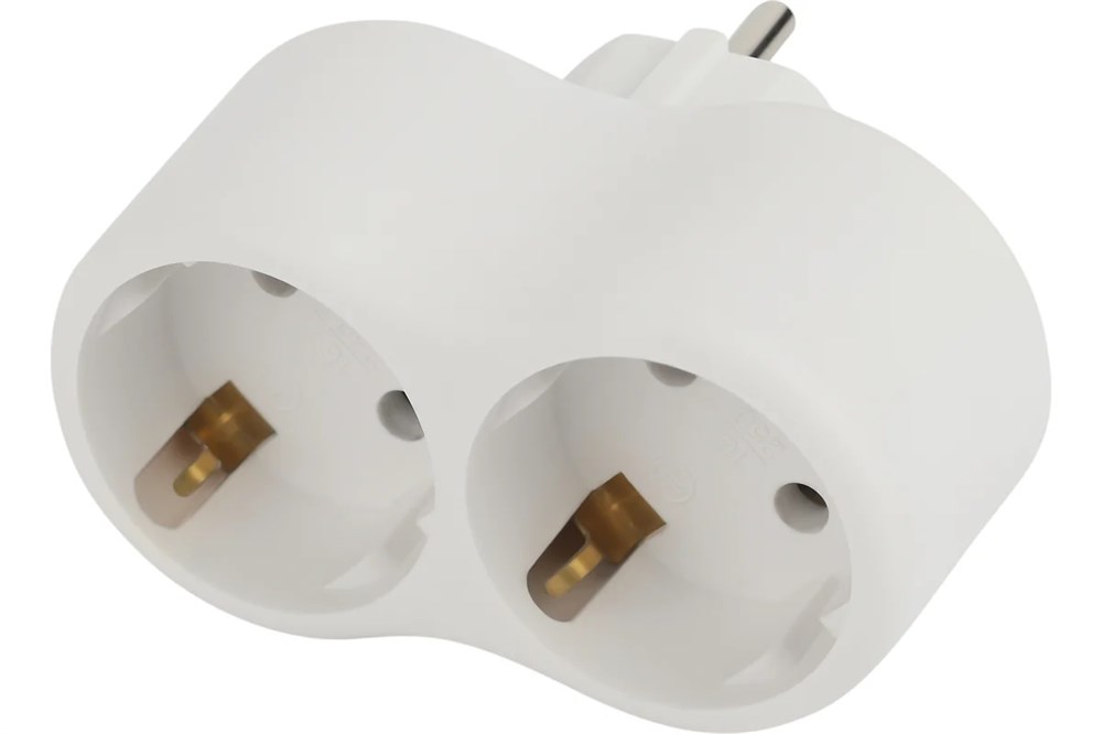 Разветвитель/тройник ЭРА SPx-2е-W Б0053478, двухместный, с заземлением, плоский, белый