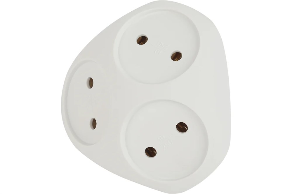 Разветвитель/тройник ЭРА SPx-3-W Б0053481, трехместный, без заземления, треугольник, белый