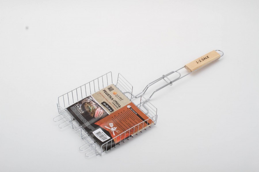 Решетка-гриль 1-2.SALE, 22х20х5см, глубокая, ручка 58см, стальная, хром