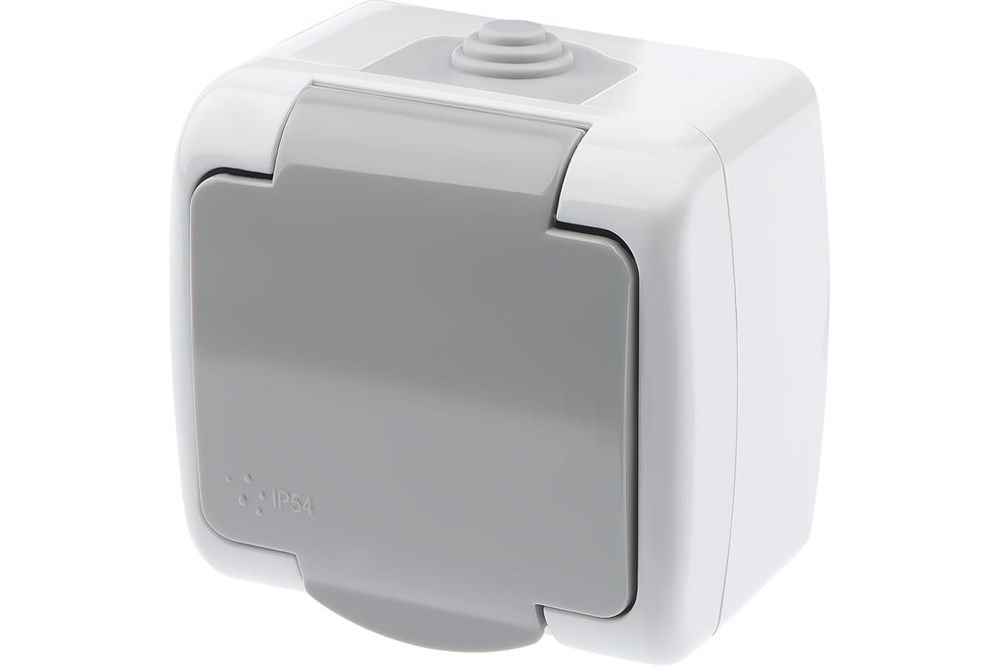 Розетка INTRO Atlantic 5-201-03, одноместная, накладная, с заземлением, с защитной крышкой, серая