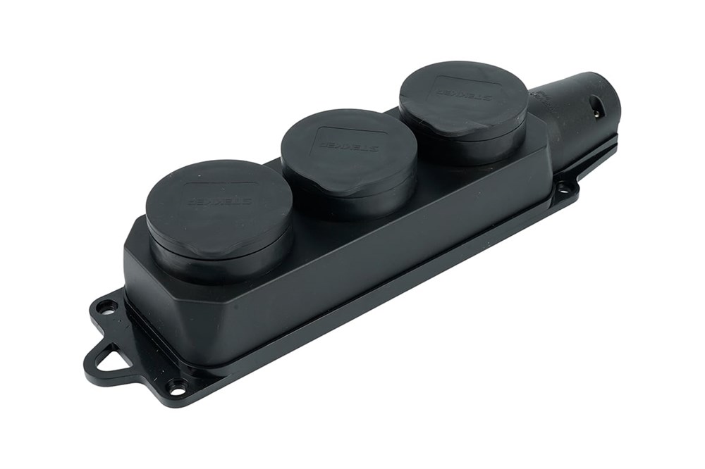 Модель выполнена в черном цвете и имеет степень защиты IP44. Материал изготовления - каучук. Размер устройства составляет 257х66х51мм. Номинальное напряжение - 250, номинальный ток - 16А, диапазон рабочих температур +1..+35°C.