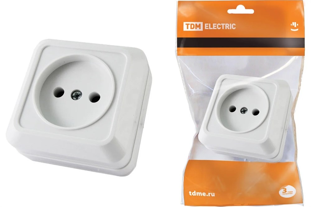 Розетка TDM Ладога SQ1801-0113, одноместная, накладная, белая, без заземления - купить в Орле недорого!