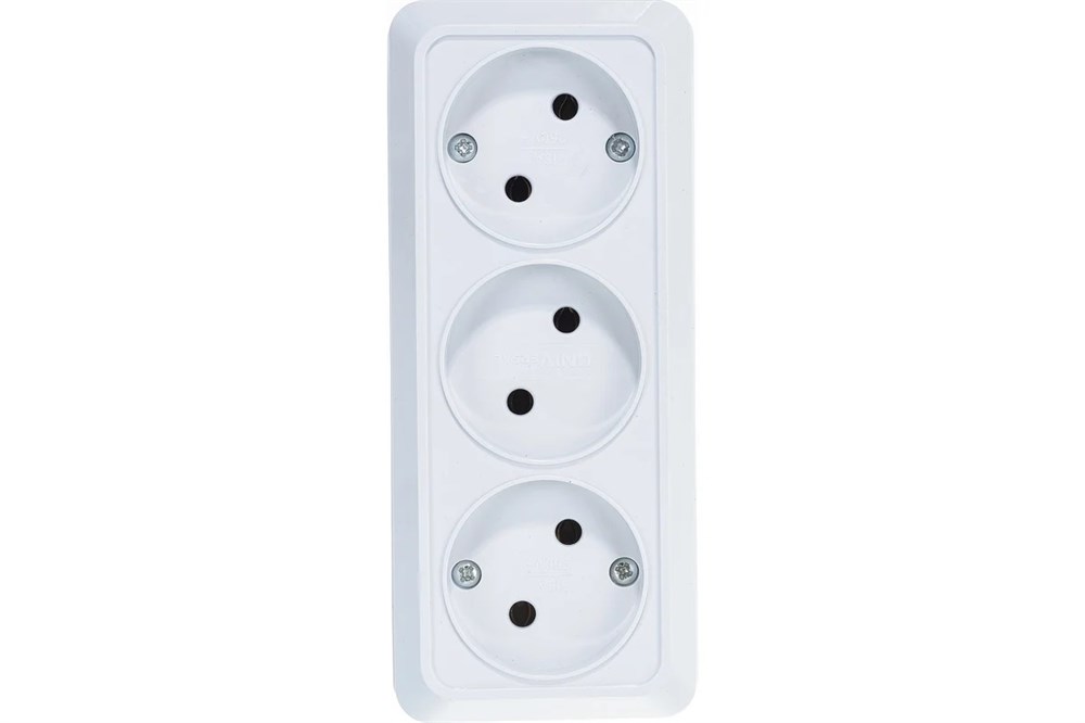 Розетка UNIVersal Олимп 1160, трехместная, накладная, белая, без заземления - купить в Орле недорого!