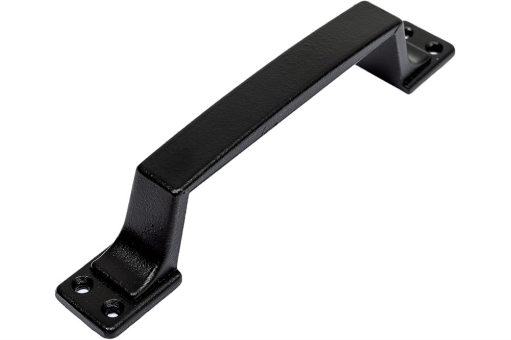 Ручка-скобка изготовлена из сплава алюминия, благодаря чему обладает легкостью и высокой прочностью. Правильная форма ручки без пустот и ребристых элементов делает её удобной для использования. Возможна установка на любую деревянную дверь внутри или снаружи помещения с помощью саморезов, которые входят в комплект.