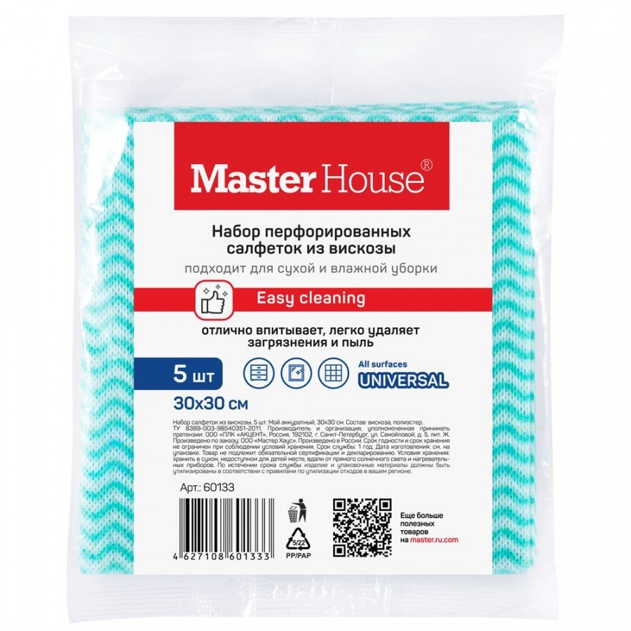 Салфетка для уборки МОЙ аккуратный 60133 Master House, 30x30см, вискоза, с перфорацией, набор 5шт.