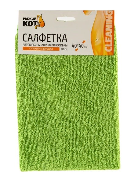Салфетка для уборки Рыжий Кот СМ-02 280101, 40x40см, 250г/м2, супервпитывающая, микрофибра, микс - купить в Орле недорого!