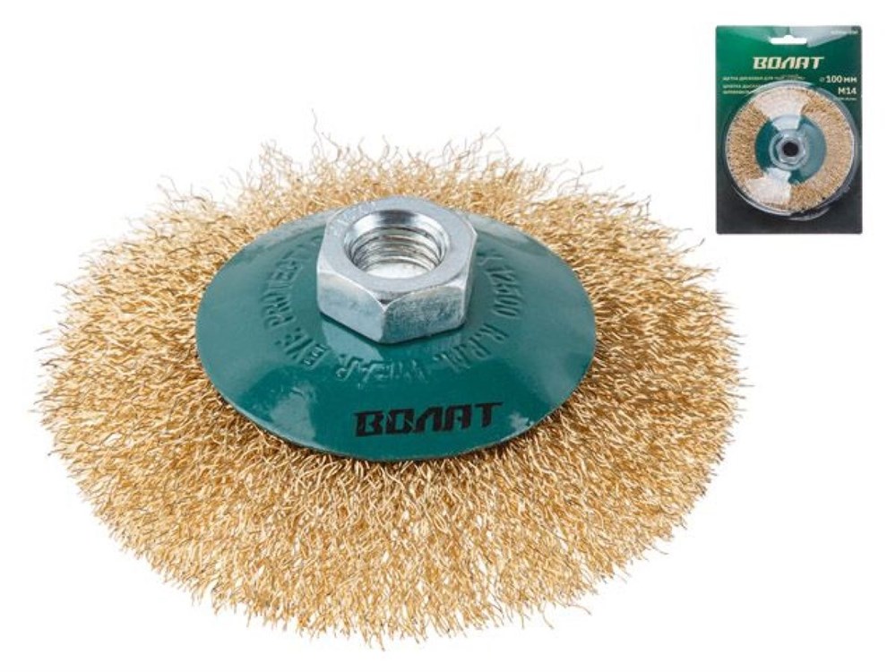 Щётка для УШМ ВОЛАТ, 100мм, дисковая, витая металлическая проволока 0.3мм