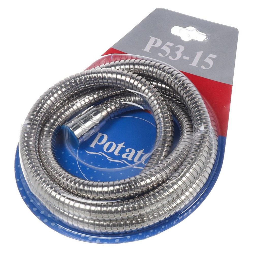 Шланг для душа POTATO P53-15, растяжной, 1.5-1.8м, нержавеющая сталь