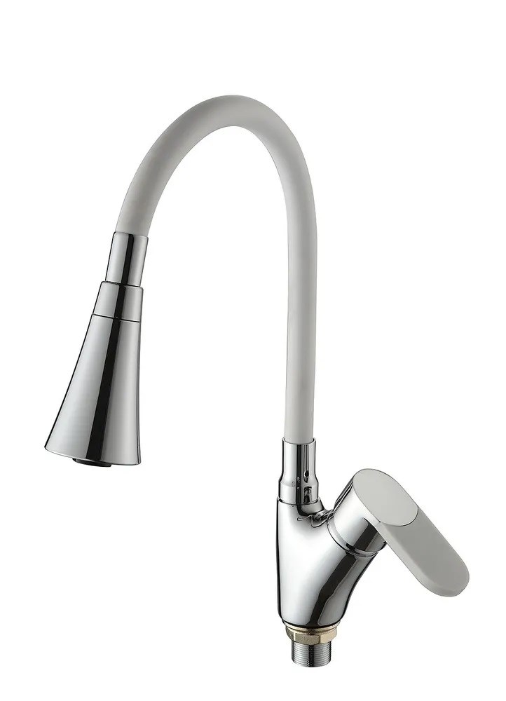 Смеситель для кухни AMMORE А5007-3Т, с гибким изливом, однорычажный, на гайке, белый