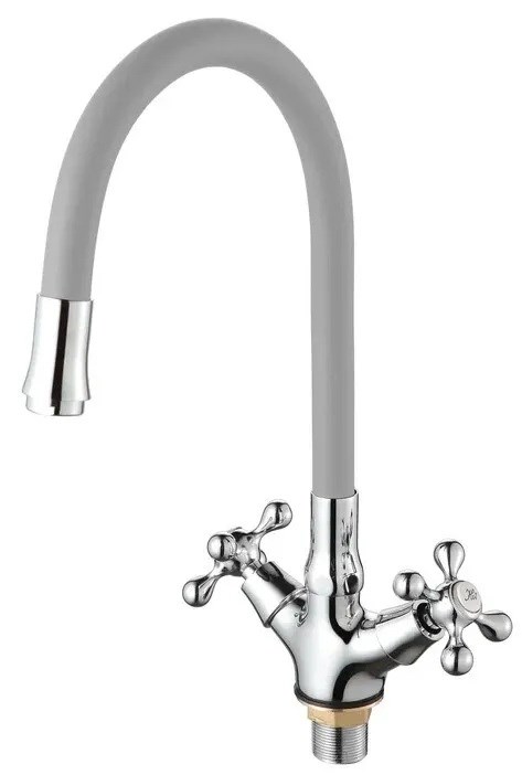 Смеситель для кухни D-LIN D153810-2, с гибким изливом, двухвентильный, серый, силикон