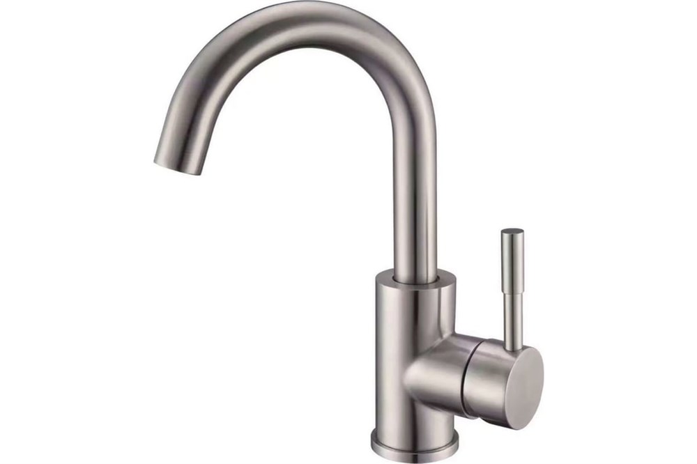 Смеситель для умывальника РМС SUS124-001F-1, однорычажный, излив 245мм, нержавеющая сталь