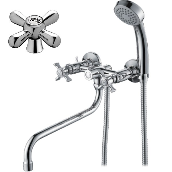 Смеситель для ванны имеет два рычага чтобы регулировать напор воды. Аэратор в приборе позволяет обеспечить равномерную подачу воды , а также ее смягчение. Модель обладает поворотным изливом. Прибор оснащен качественной керамической кран-буксой. У подобных приборов переключение подачи воды на излив или душевой шланг совершается при помощи поворота специального рычага, который вынесен на переднюю панель прибора. Установка прибора осуществляется на два отверстия,В комплект: инструкция по установке, гарантийный талон, душевая лейка , держатель лейки , комплект эксцентриков , комплект отражателей.