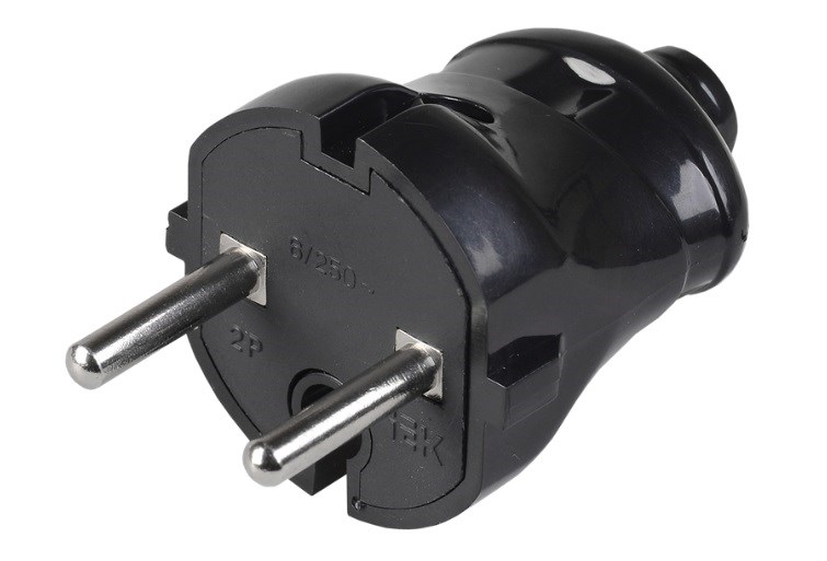 Вилка прямая IEK EVP-20-06-01-К02, 6А, 250В, IP20, без заземления, АБС-пластик, черная - купить в Орле недорого!