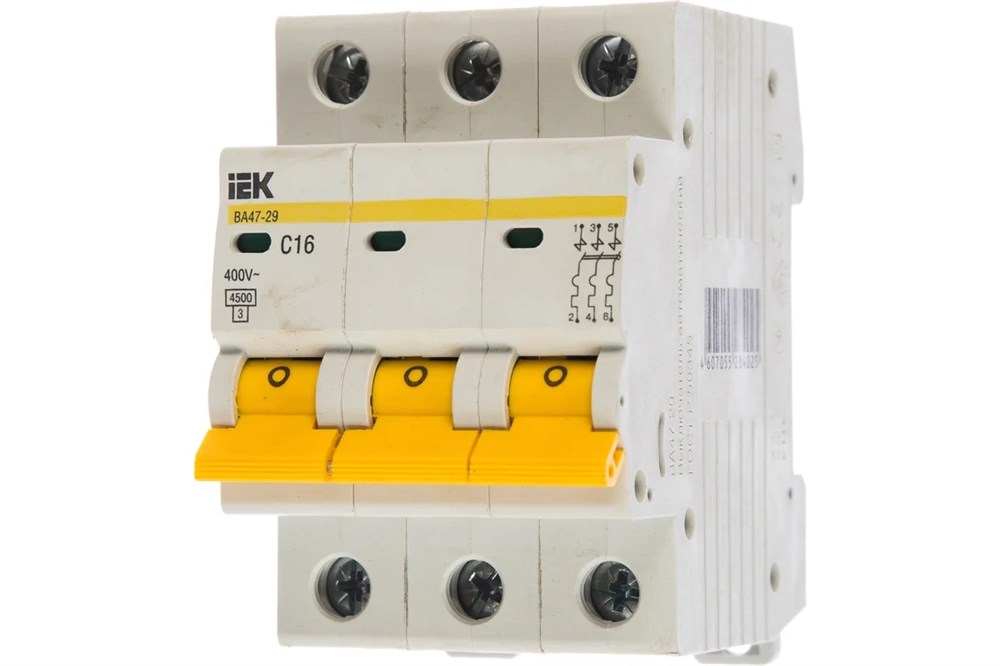 Выключатель автоматический IEK ВА 47-29 MVA20-3-016-C, трехполюсный, 16А, 4.5кА - купить в Орле недорого!