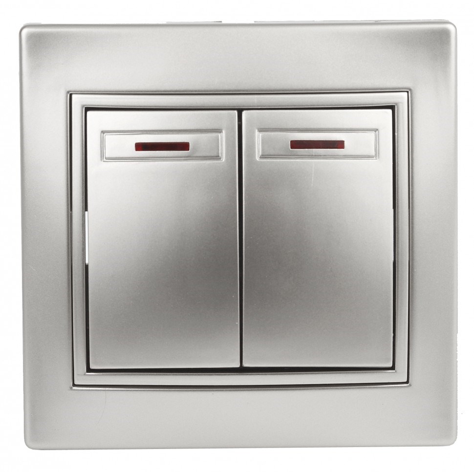 Выключатель ЭРА Intro Plano 1-105-03, двухклавишный, встраиваемый, алюминий, с подсветкой - купить в Орле недорого!