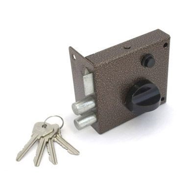 Накладной замок с защелкой и вертушкой. Закрывание и открывание внутри помещения при помощи вертушки, снаружи ключом. Удаление ключевого отверстия от планки (бэксет) - 60мм.