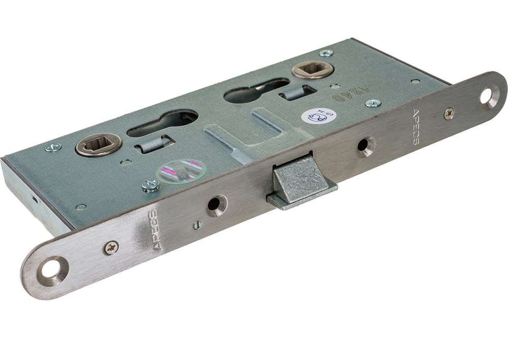 Замок имеет одно направление запирания – тремя стальными ригелями диаметром 12 мм, которые выдвигаются из корпуса замка на 24 мм. Запирание происходит на два оборота. Замок имеет защёлку, поэтому может быть установлен в дверь в качестве основного запирающего устройства. Рекомендован для дверей различного назначения – как металлических, так и деревянных. Замок имеет корпус повышенной жесткости, усиленный втулками. Это технически позволяет крепить врезную броненакладку.